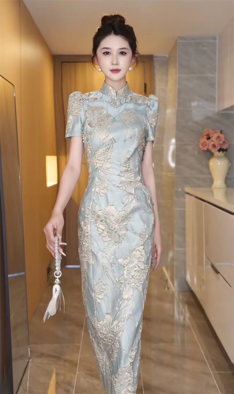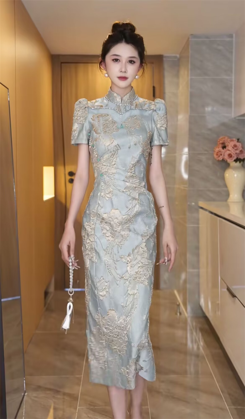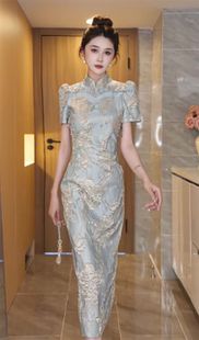 复古风刺绣设计感中长款 抖音爆款 新款 2024年夏季 洋气连衣裙 新中式