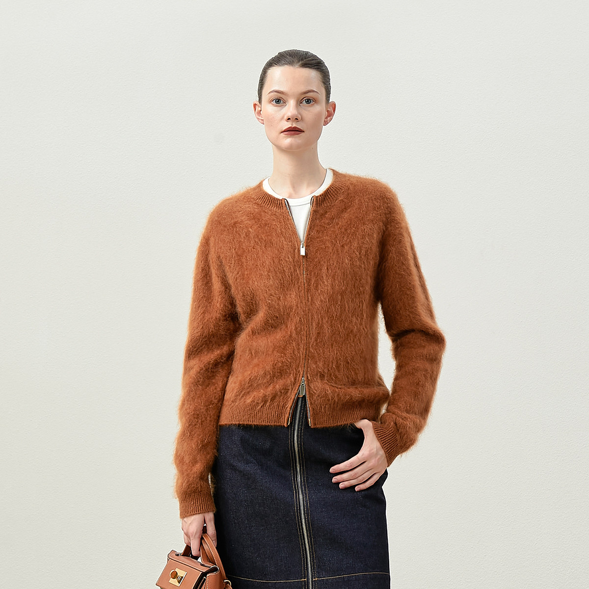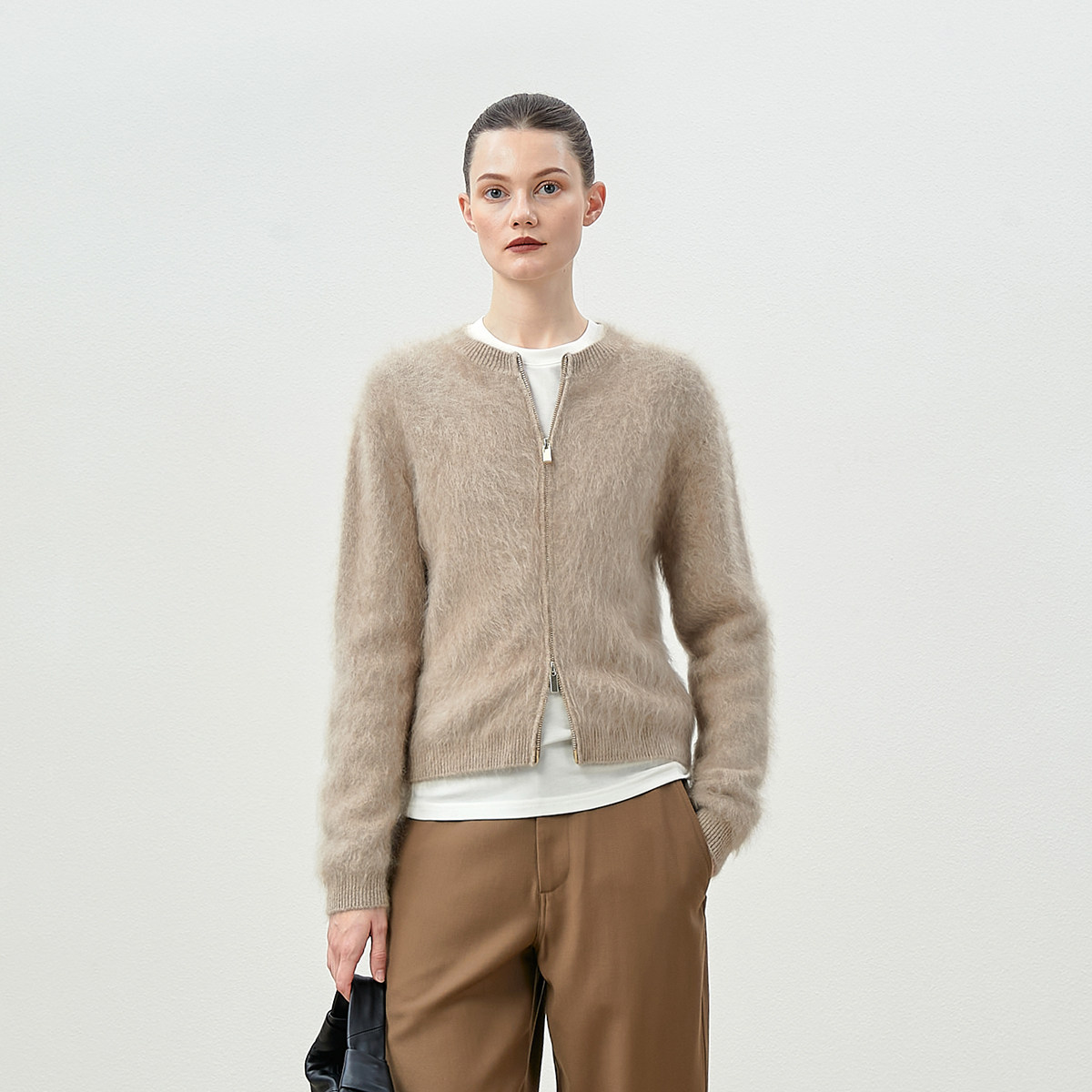 100%羊毛立领毛衣开衫 智性模式 女双拉链针织外套上衣 Lin Maven