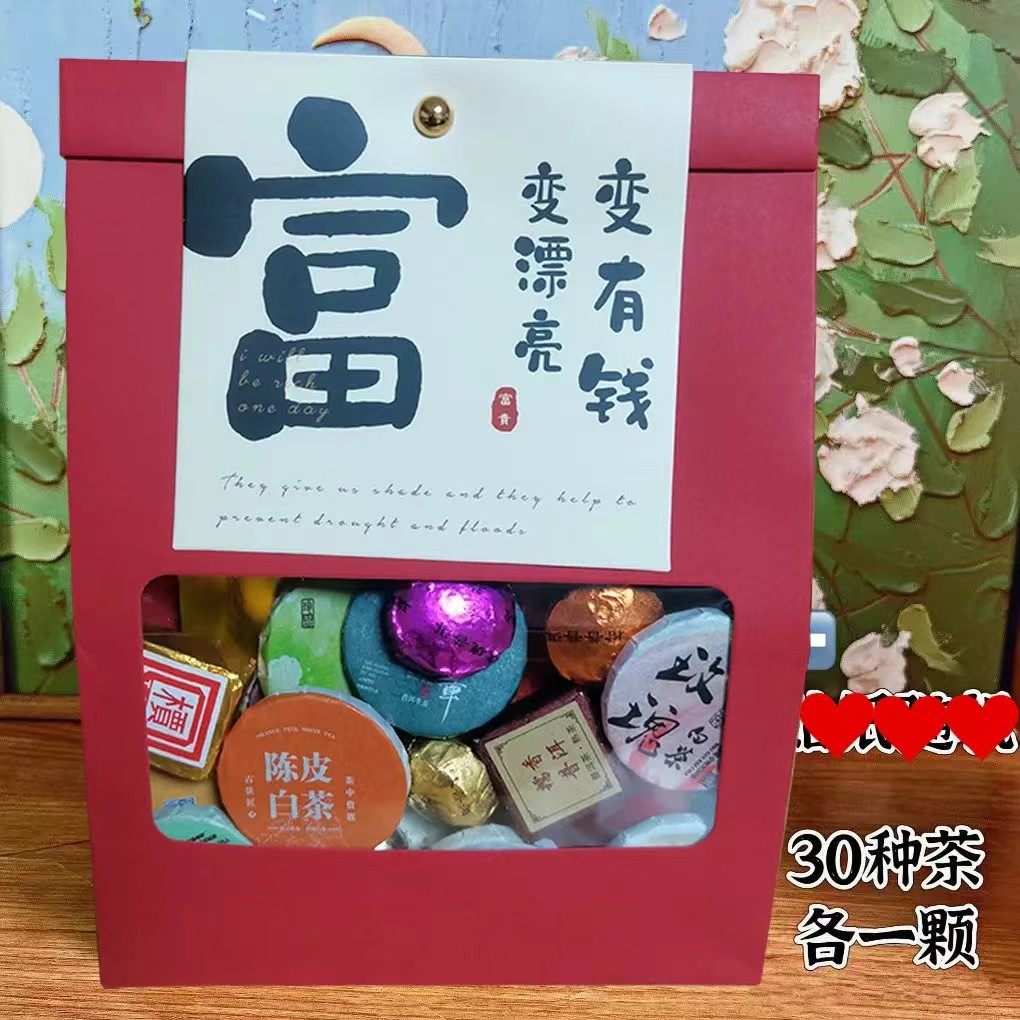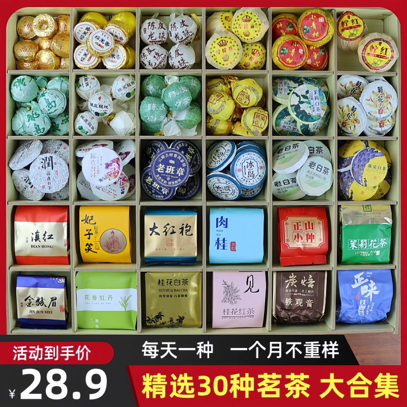 30种茶样试喝大礼包熟茶生茶小青柑云南普洱滇红茶福鼎白茶叶礼品