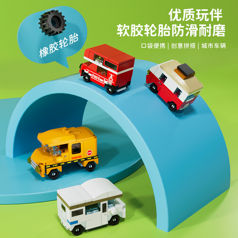 方橙积木玩具儿童益智拼装 汽车男孩子跑车模型越野小颗粒拼图礼物