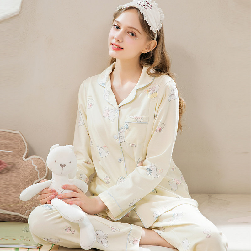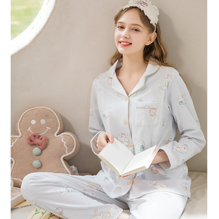 纯棉长袖 高级感家居服套装 薄款 秋冬季 2025年新款 浪莎睡衣女春秋款