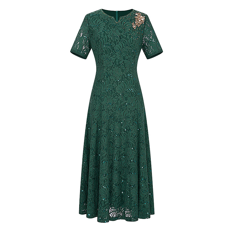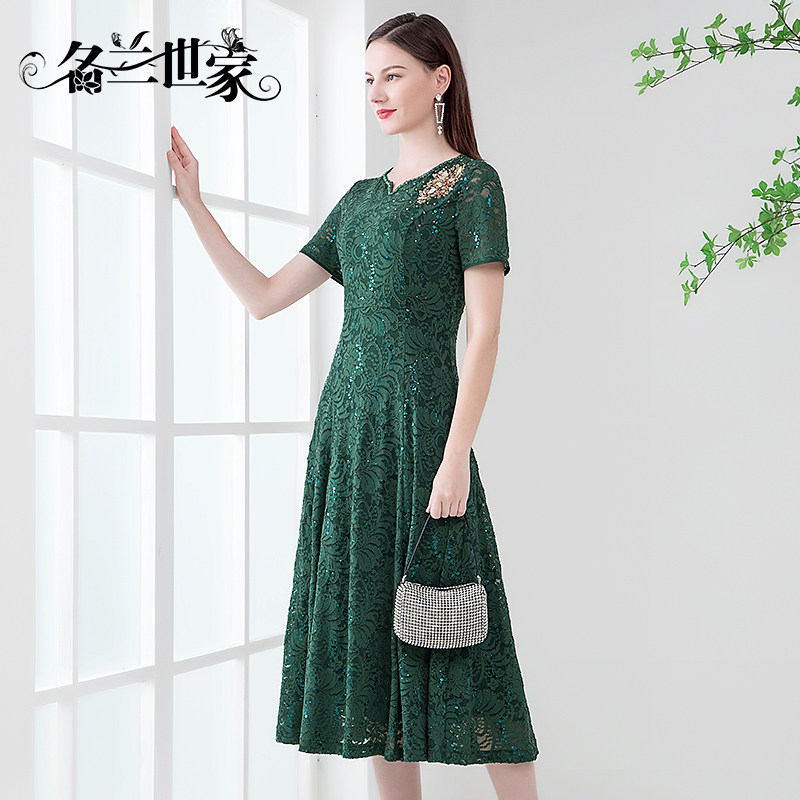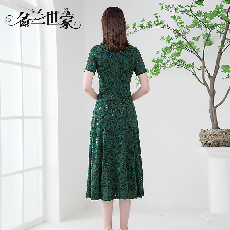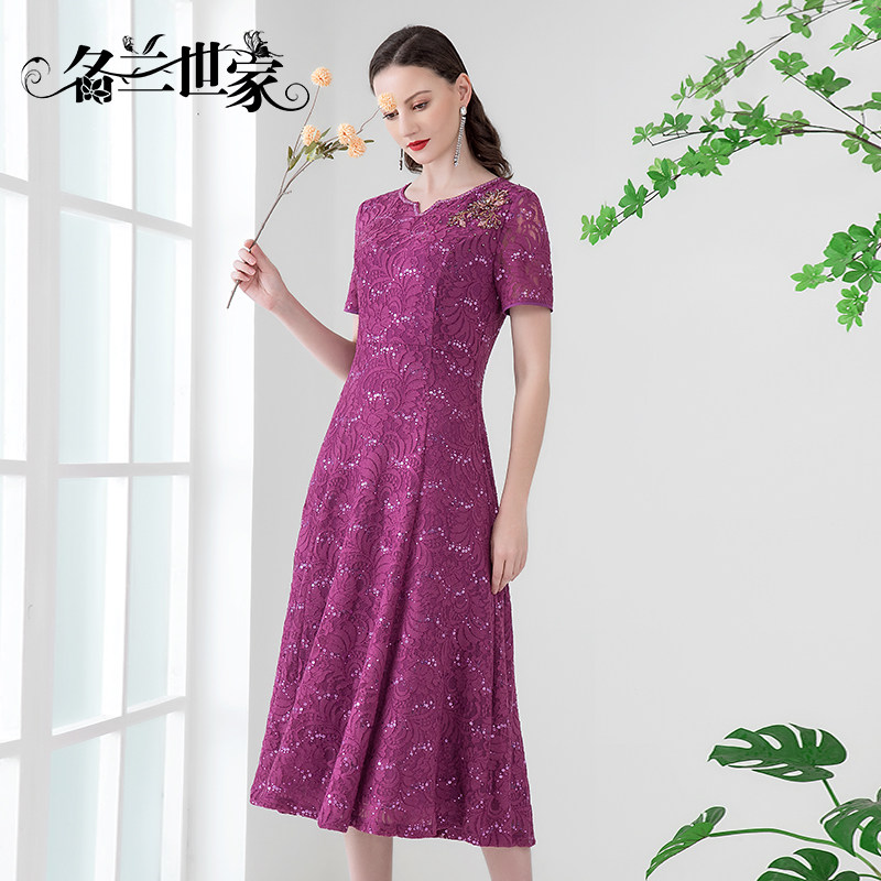名兰世家原创设计师品牌小众妈妈宴会礼服高端短袖 蕾丝连衣裙显瘦