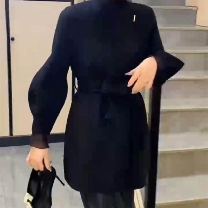 胖mm特大码 毛呢外套 黑色赫本风呢子大衣女秋冬高级感慵懒风中长款