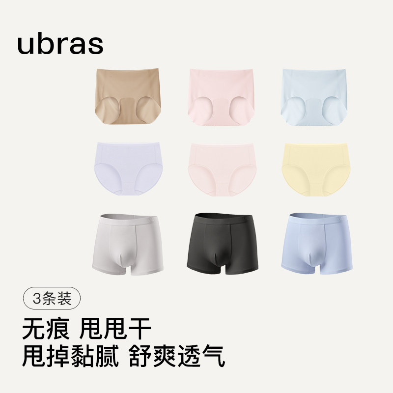 40S抗菌裆男女内裤 ubras冰丝 3条装 香菇宠粉节