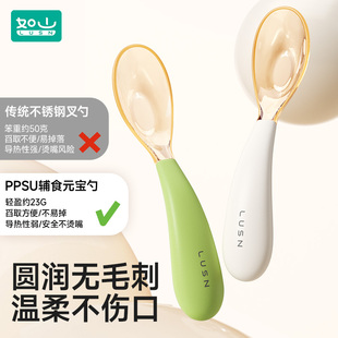 如山宝宝自主进食辅食勺子婴儿学吃饭训练儿童不锈钢餐具元 宝叉勺