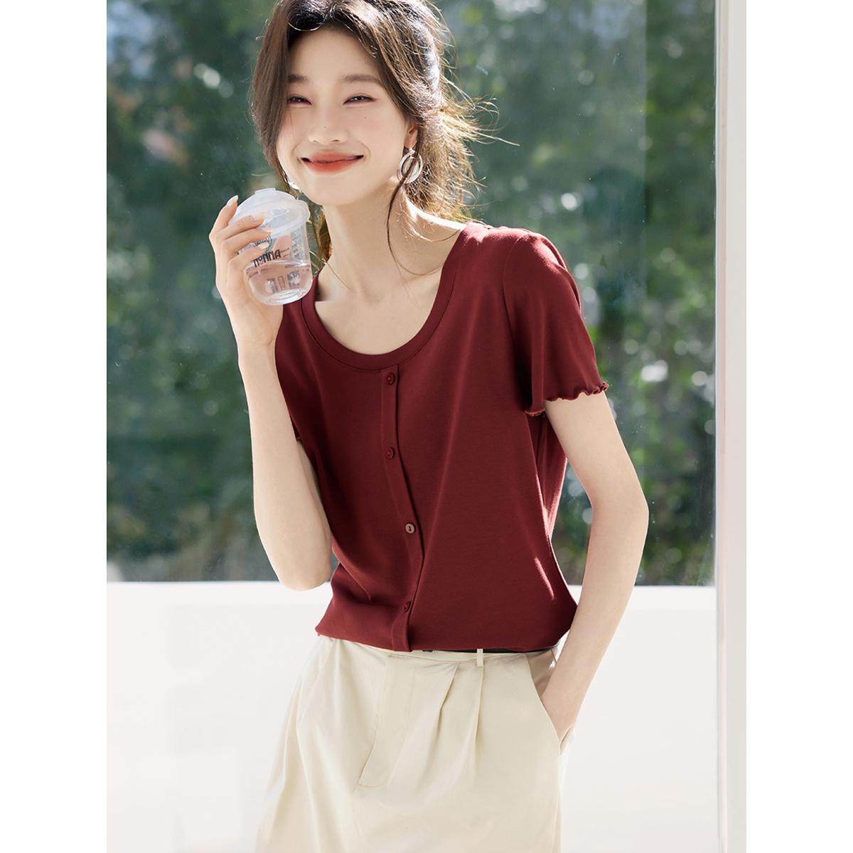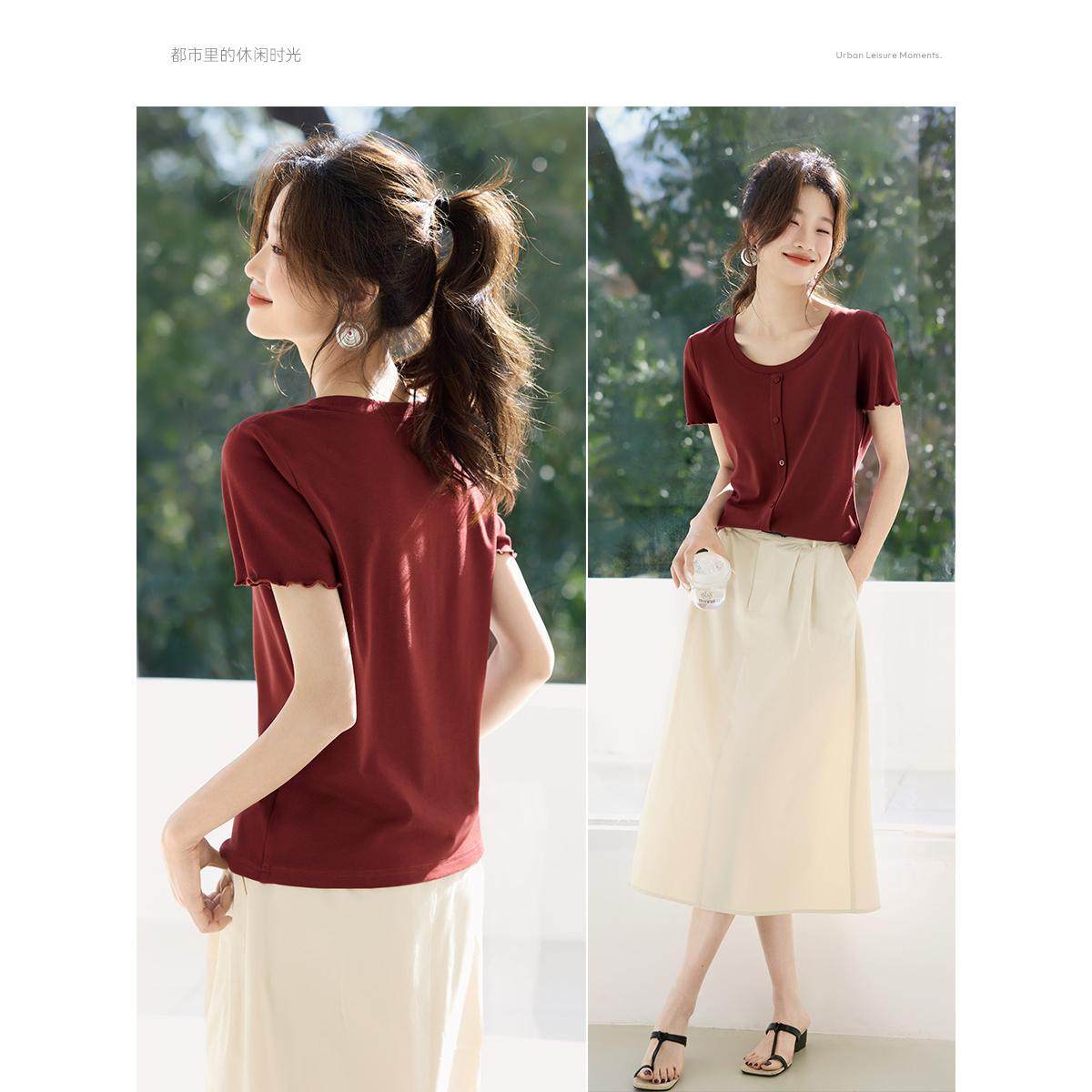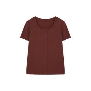 简约百搭显瘦女T恤 新款 沫晗依美慵懒休闲木耳边短袖 T恤2025年夏季