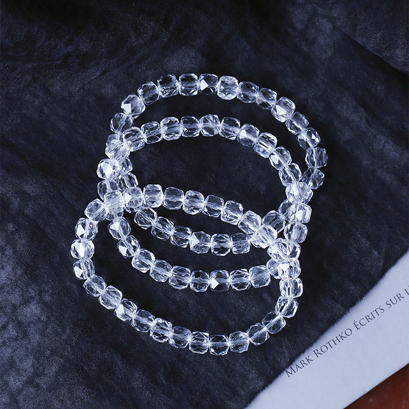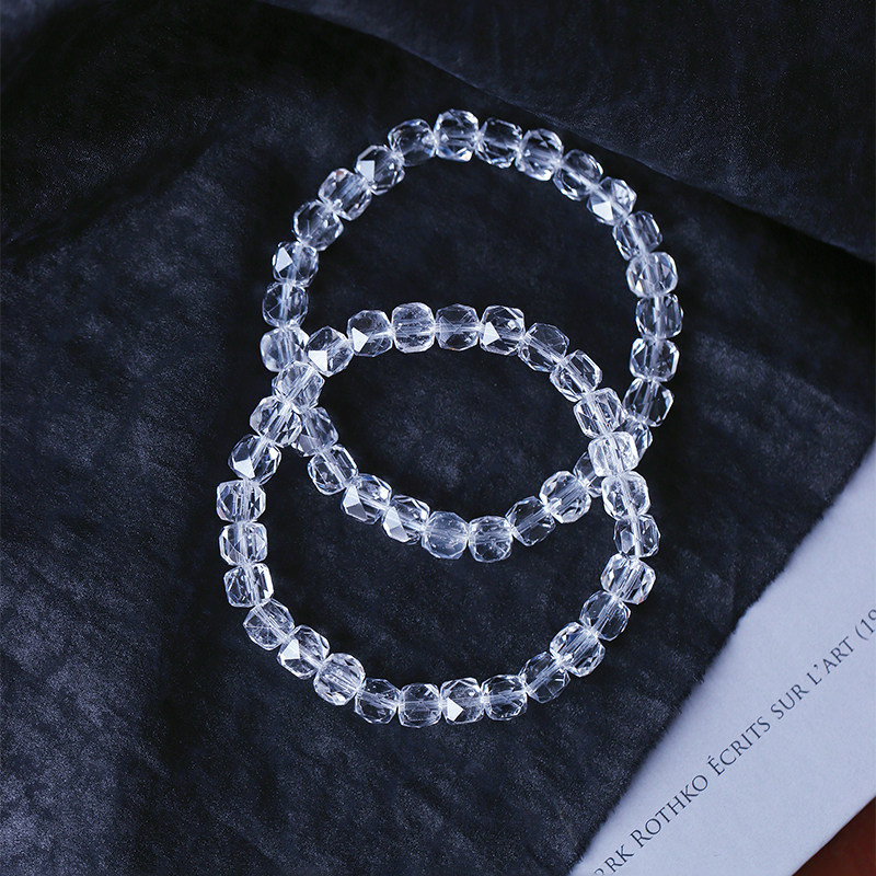 刻面白水晶手串饰品礼物 冰透清新款 天然白水晶切面方糖款 手链女款