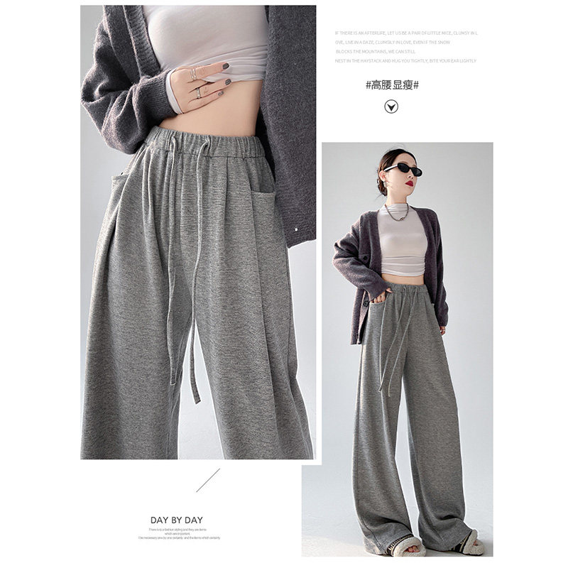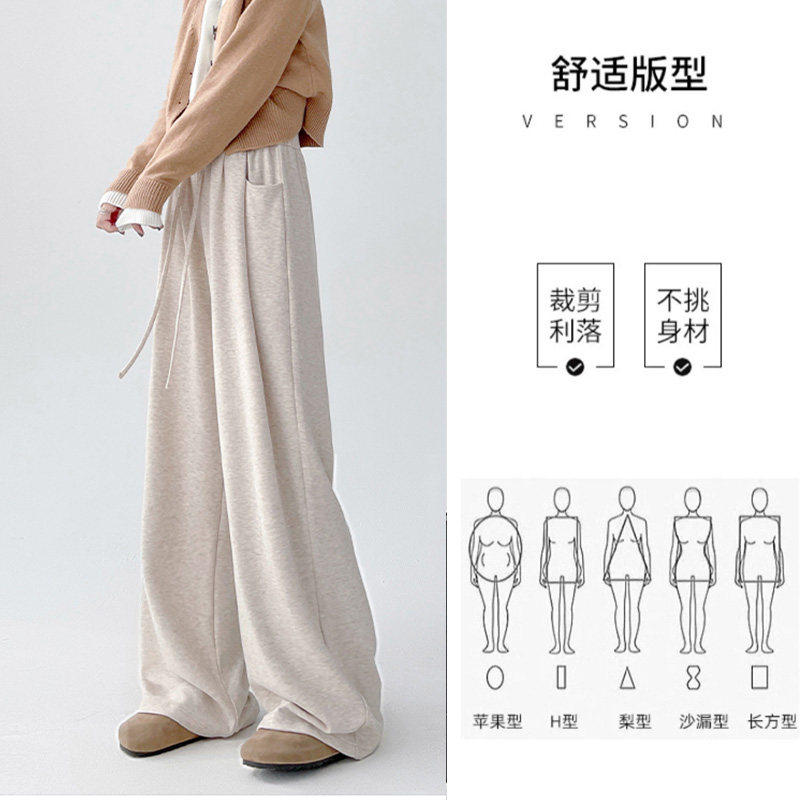 2025高腰宽松垂感直筒休闲慵懒运动阔腿裤 子女春秋夏季 糯米裤 窄版