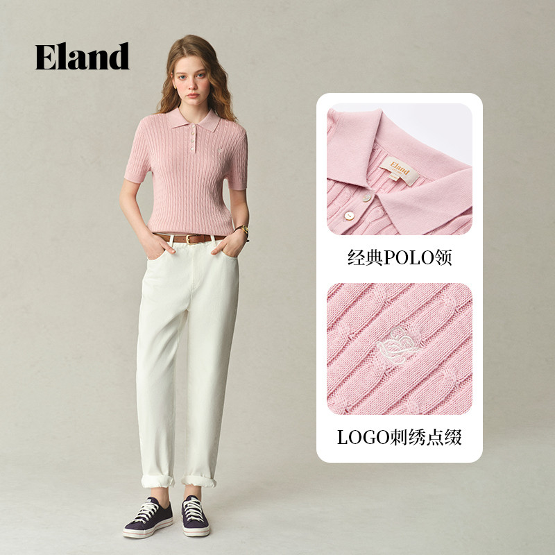 25夏季 Eland衣恋针织T恤女polo领含莫代尔短袖 新款 缤纷棉棉冰