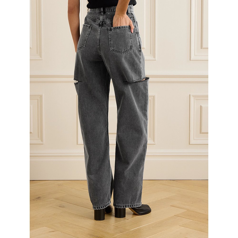 女010GAS11 王MOUSSY直筒毛边磨损高腰牛仔裤 5440 裤 明星同款