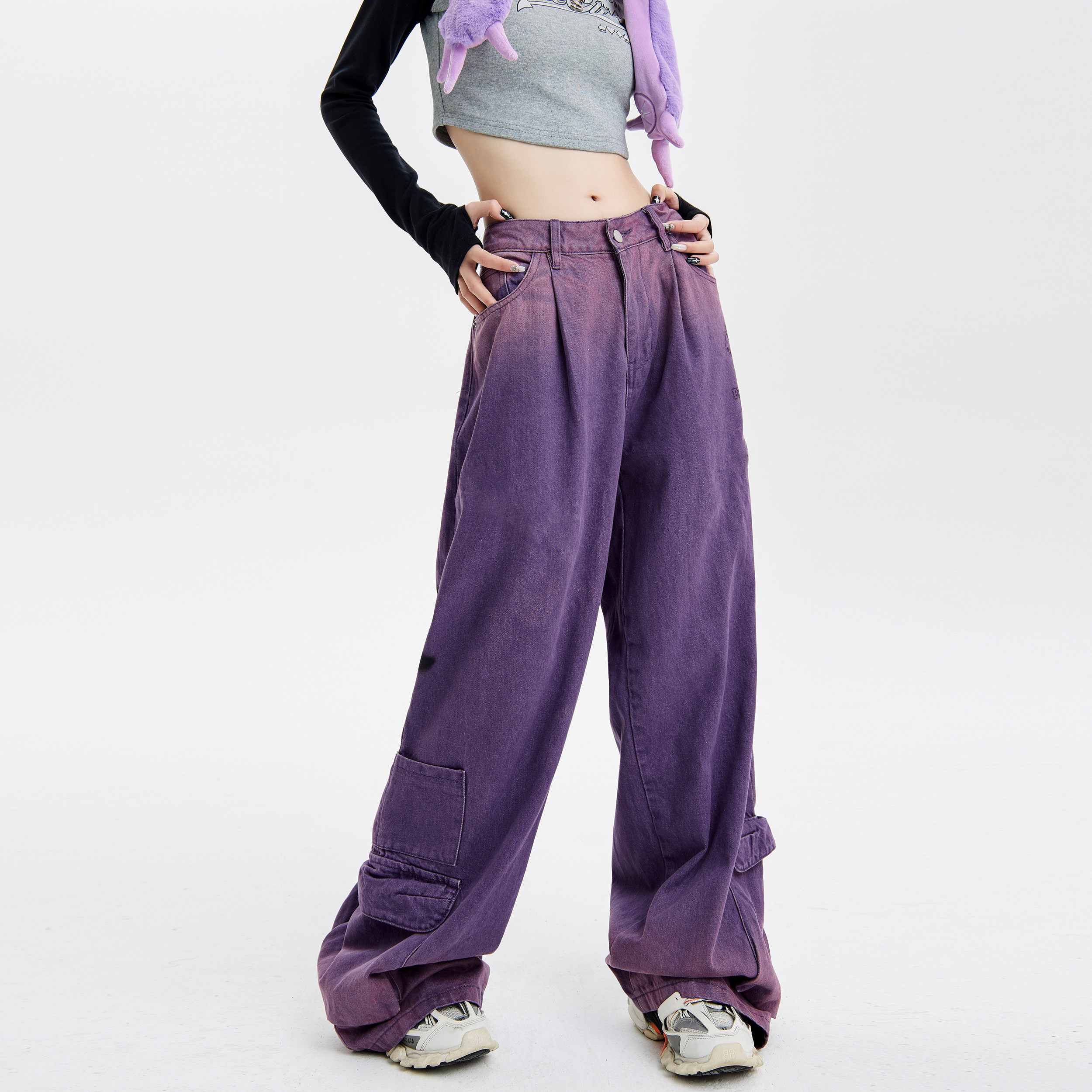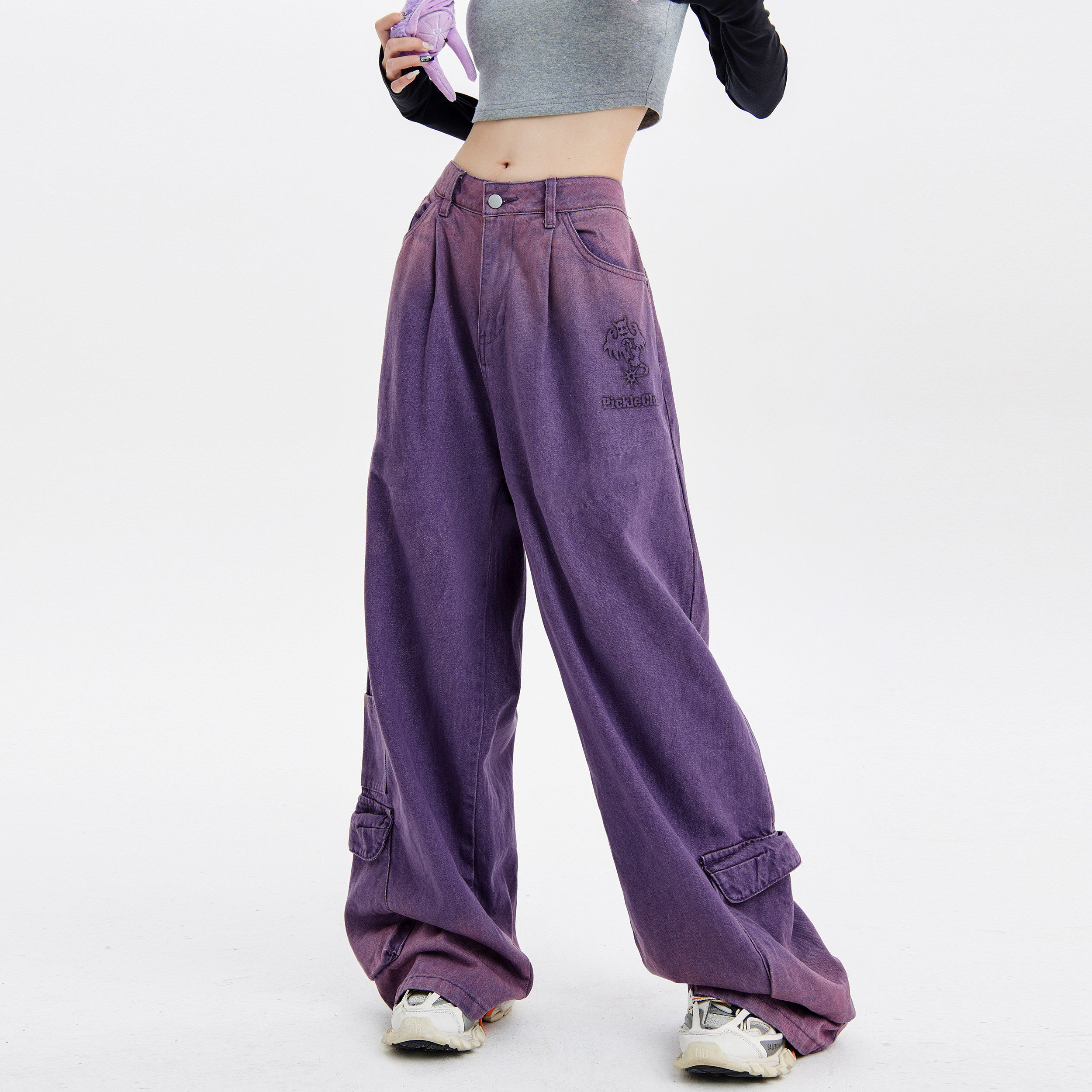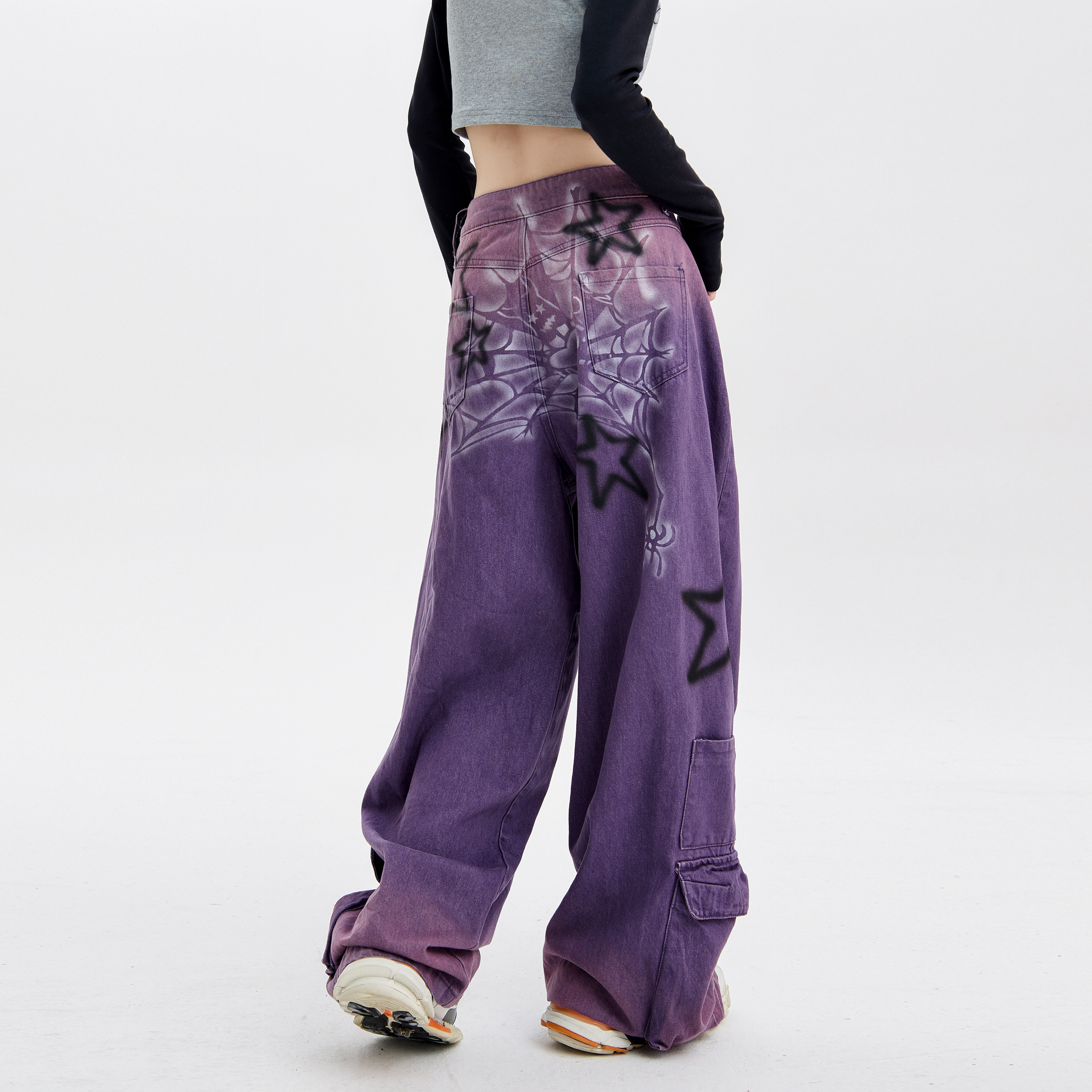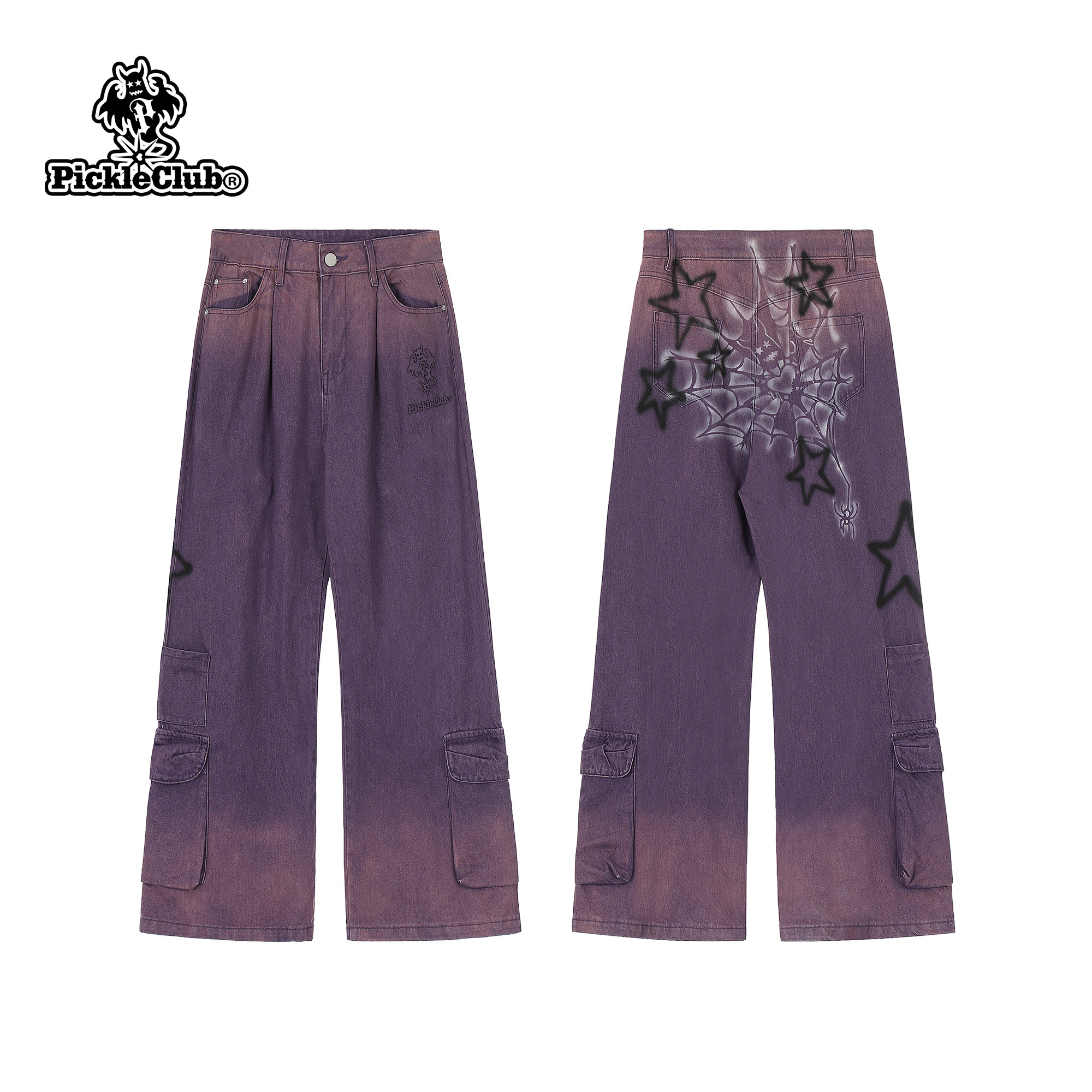 梁拌泡菜LBPC蜘蛛网星星设计感小众阔腿牛仔裤 潮休闲百搭街头感裤