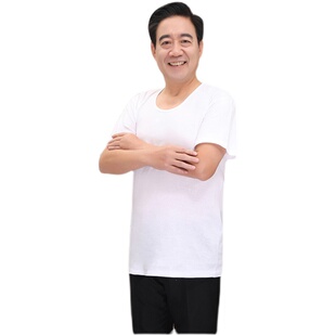 内衣老头衫 宽松全棉背心圆领短袖 中老年人夏季 男士 纯棉吸汗衫 薄款