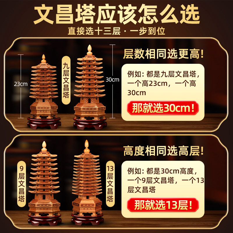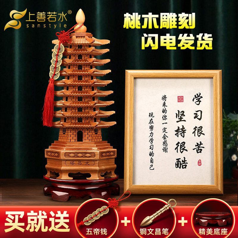 桃木文昌塔摆件木质九层9十三层13层办公室 饰品 书房桌木雕制装