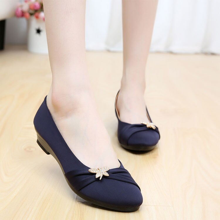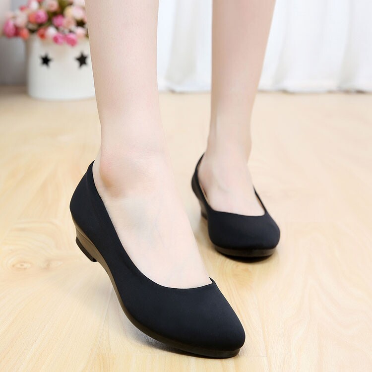 酒店礼仪服务员鞋 黑色平底坡跟高跟广场跳舞鞋 女工作鞋 老北京布鞋