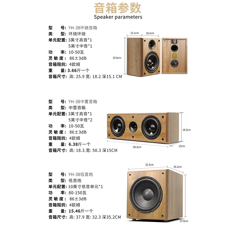 YOHONG蓝牙5.1壁挂家庭影院音响套装 家用壁挂小巧客厅无源音响