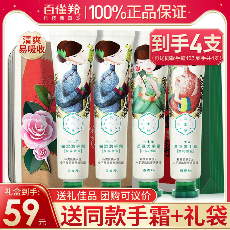 官方旗舰店正品 款 补水防干裂热卖 百雀羚三生花护手霜礼盒滋润保湿