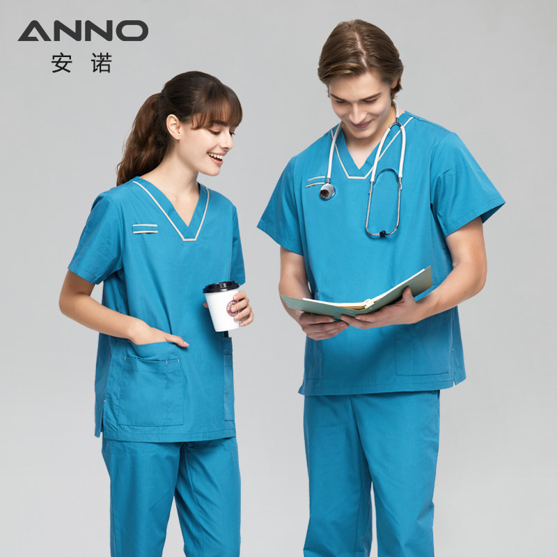 安诺护士医生宠物医院洗手服手术服工作服刷手衣V领短袖 套装