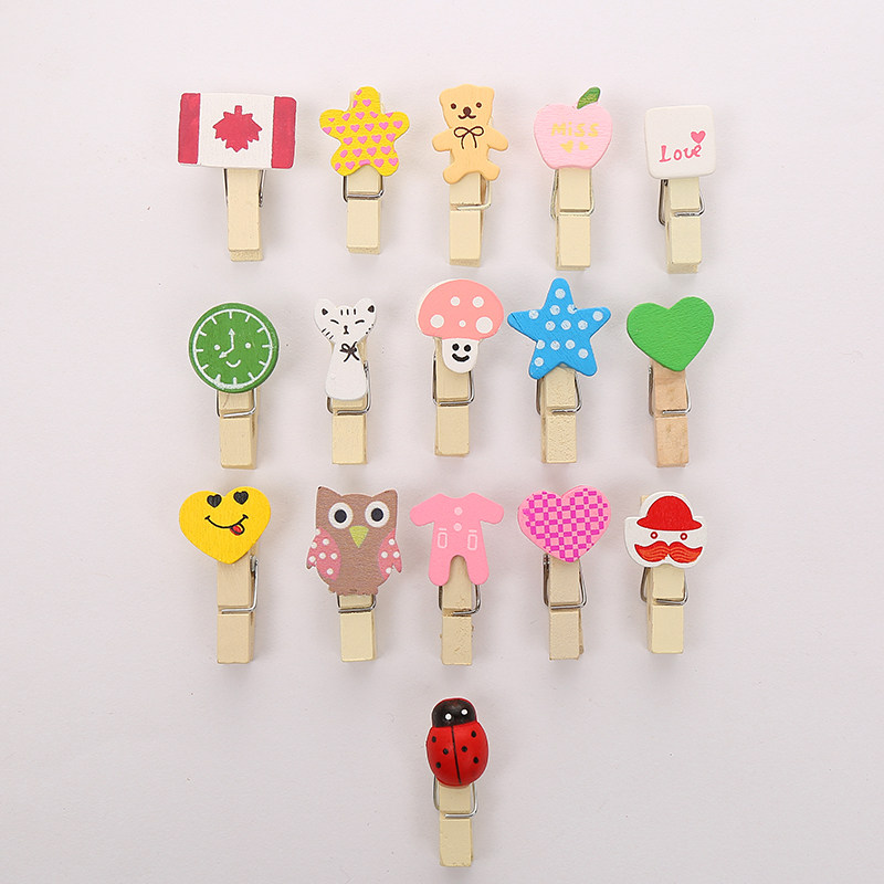 木质夹子可爱彩色爱心木夹幼儿园教室照片挂墙装 饰便签麻绳夹套装