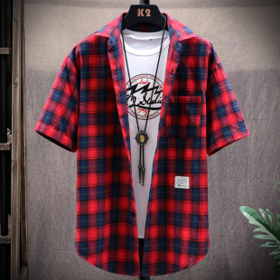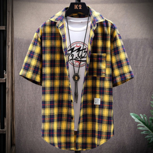 韩版 宽松个性 格子衬衣2026新款 短袖 寸衫 男士 半袖 潮牌ins外套 衬衫