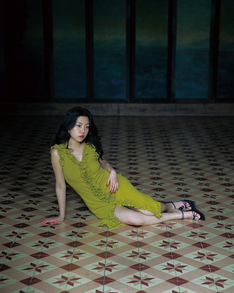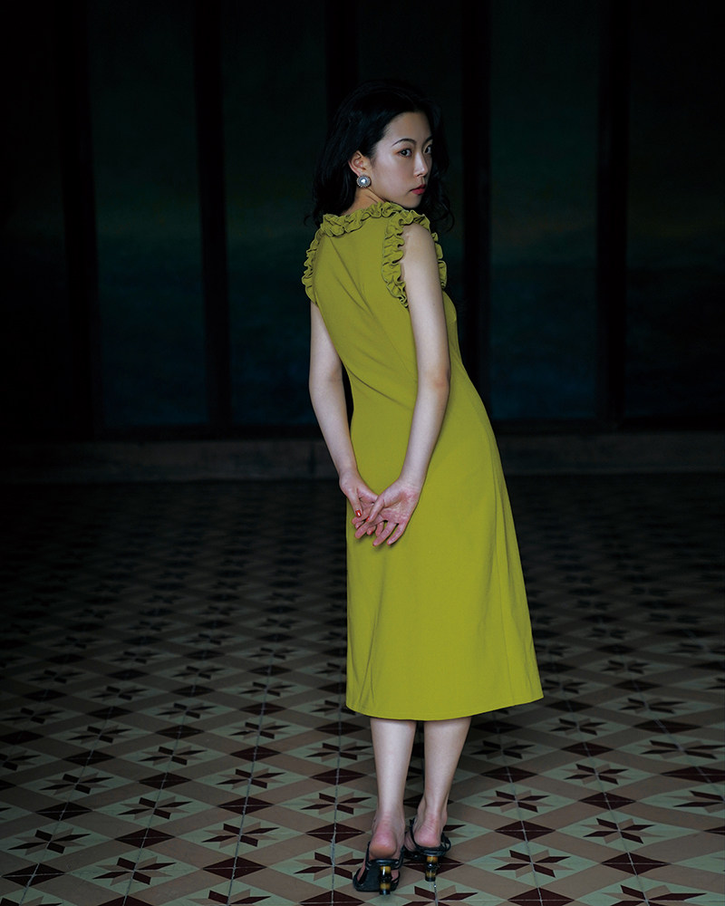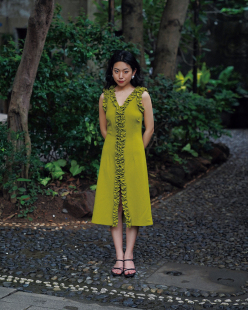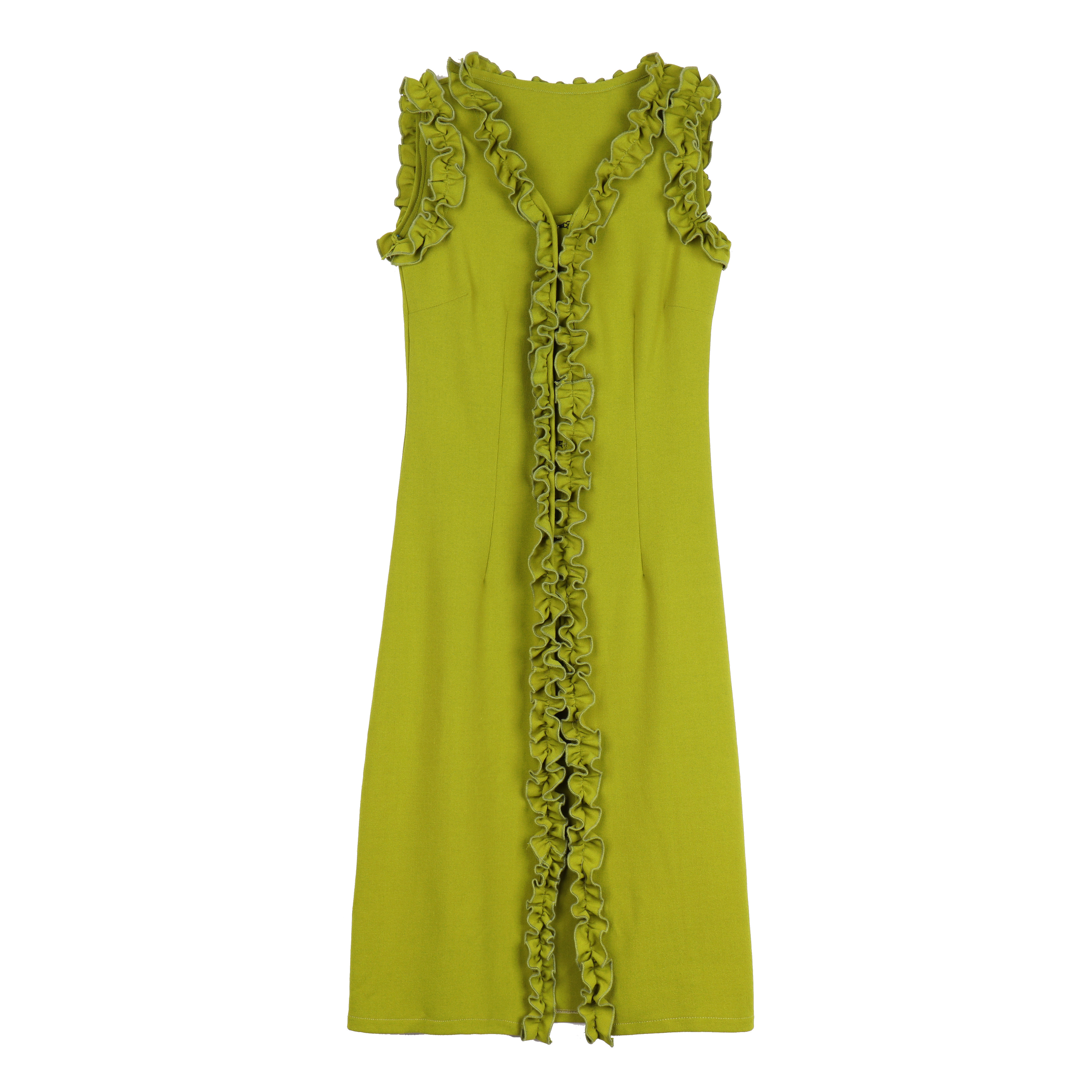 夏 中长裙连衣裙2023新款 南君「绿饵」 港风复古绿色木耳边无袖