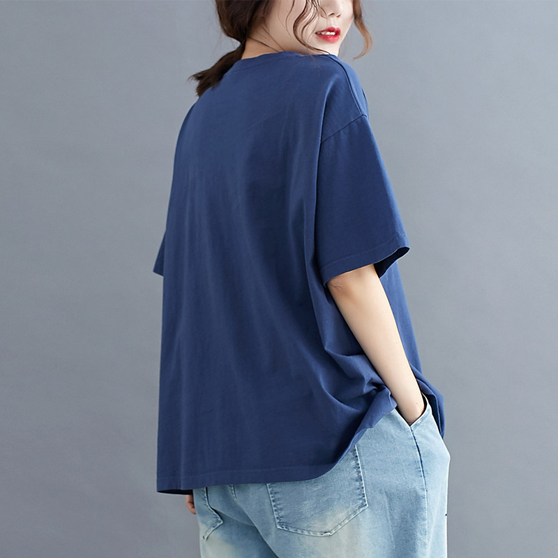 2024新款 小菲家 女上衣夏季 胖MM宽松短袖 休闲百搭撞色贴布T恤 大码