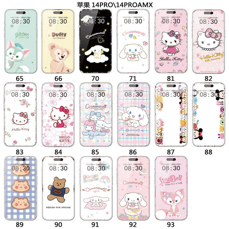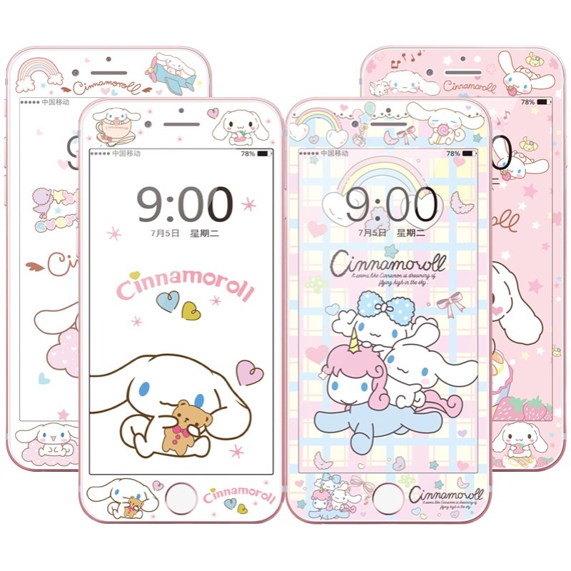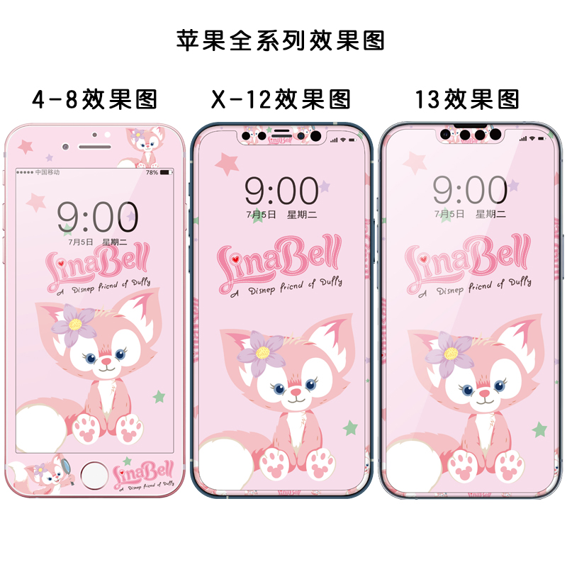 适用苹果14玉桂狗SE卡通钢化膜iphone11全屏12软膜XR彩膜7p贴膜13