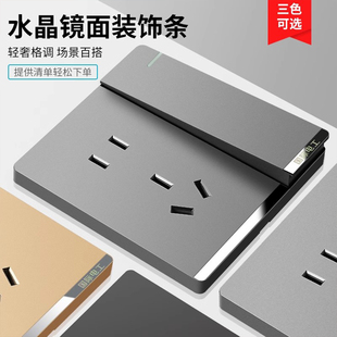 国际电工86型家用暗装 开关插座面板10A一开五孔灰色墙壁电源插座