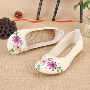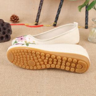 单鞋 妈妈鞋 女柔软舒适刺绣平跟麻布牛筋底绣花鞋 老北京绣花鞋