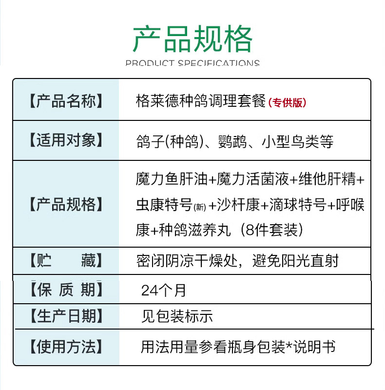格莱德种鸽调理套装 信赛鸽子繁殖清虫配对专用清理保健品组合套餐