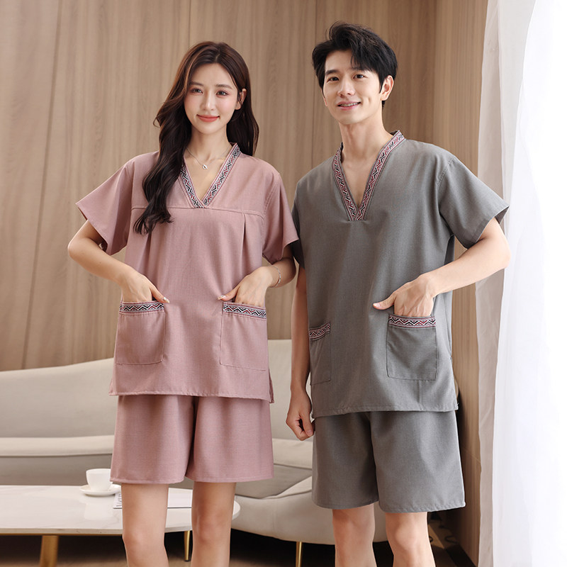 足疗高档汉蒸浴服 大码 汗蒸服女100%纯棉男款 全棉桑拿按摩服情侣装