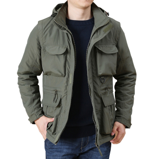 棉衣男装 保暖多袋工装 大码 冬季 棉袄冲锋棉服男潮 外套男士 可脱卸袖
