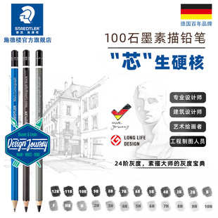 旗舰店德国施德楼100小蓝杆素描工具套装 12B学生入门绘画4B6B8B炭笔美术生专用2比速写笔软碳 铅笔绘画碳笔2H