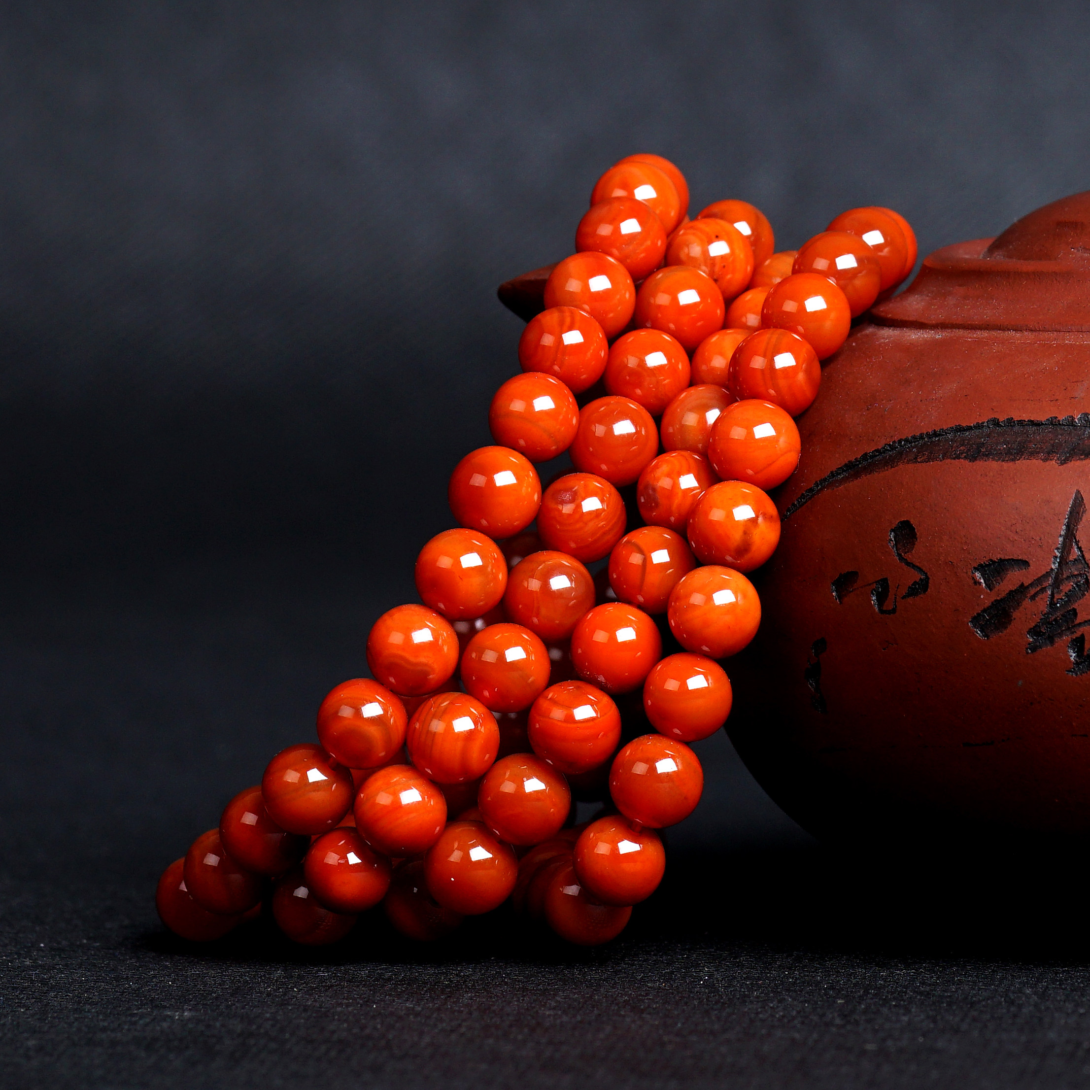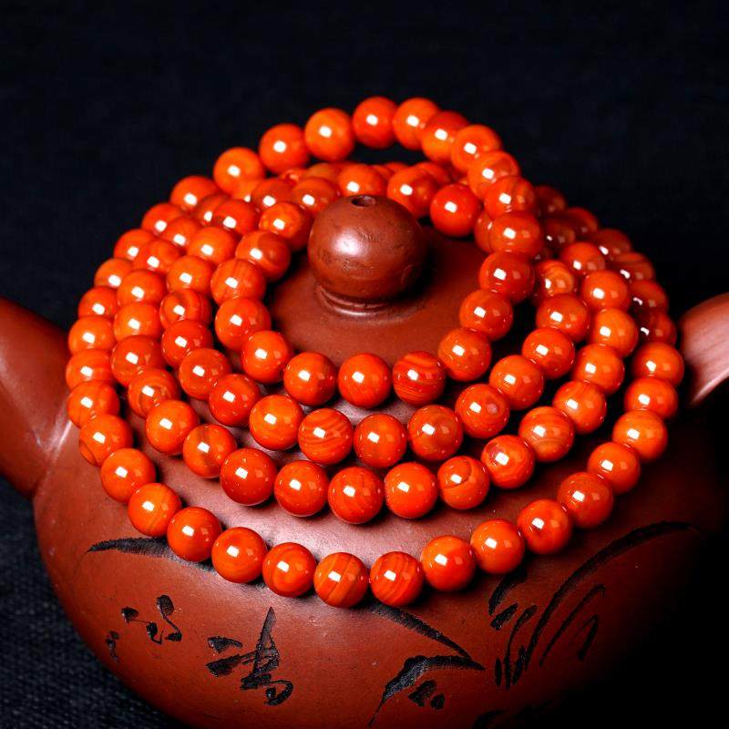 保山南红色手串玛瑙手链108颗天然云南川红佛珠柿子红满肉男女款
