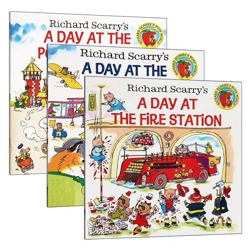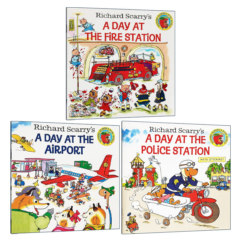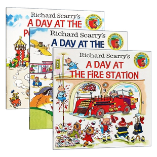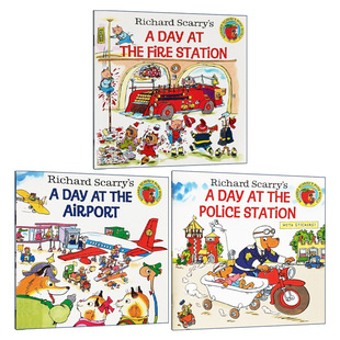 儿童绘本 一天 英文原版 斯凯瑞金色童书 进口儿童启蒙书籍 忙碌 消防站 Richard 3册套装 飞机场 Day Scarry’s 英文版 警察局