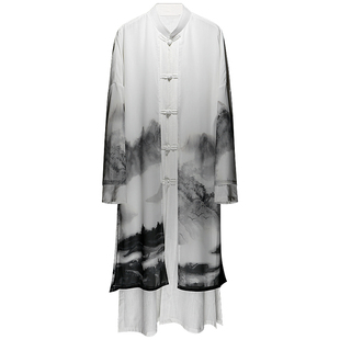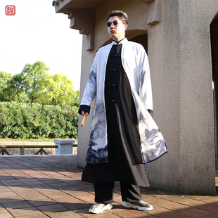 演出服国风假两件外套棉麻 舞蹈仙气飘逸长袍古装 汉服男装 古风长衫