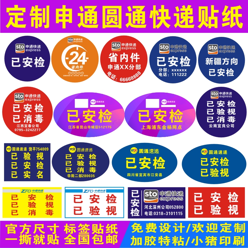 圆通申通快递网点已安检已验视消毒贴省内件标签不干胶贴纸定制做
