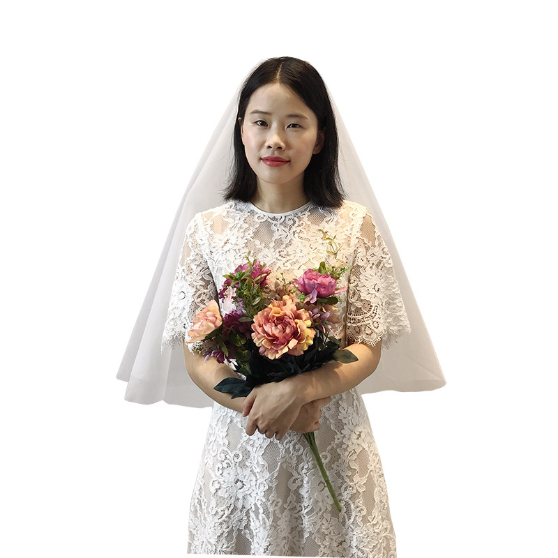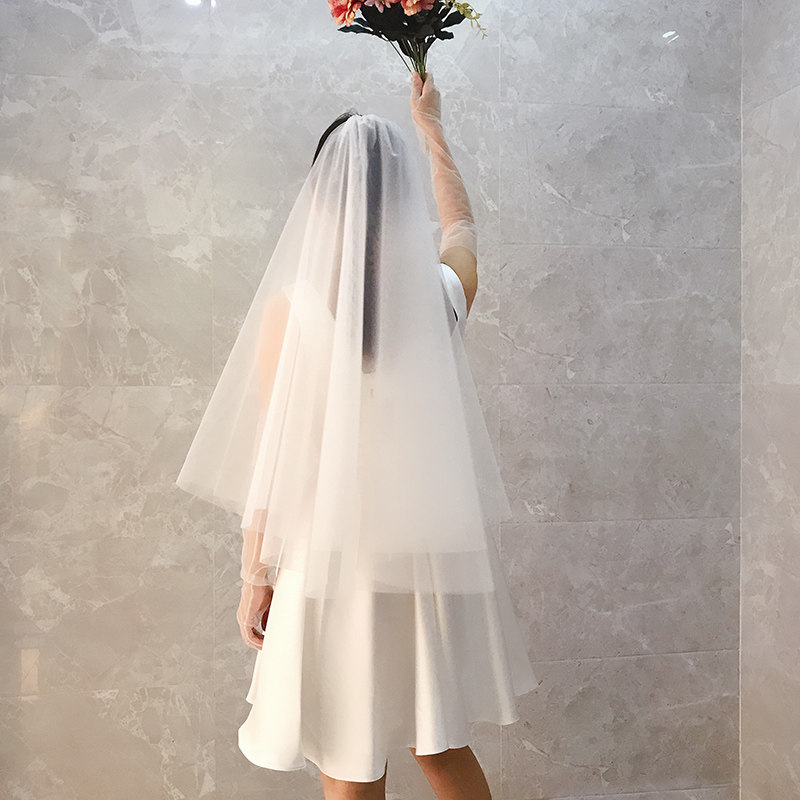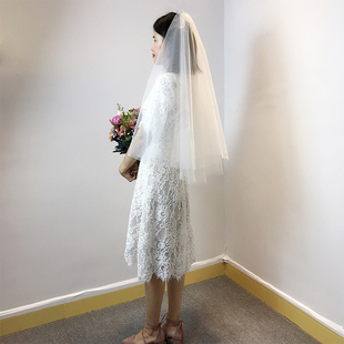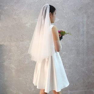 简约新娘结婚领证头纱2020旅拍新款 婚纱双层百搭发梳素纱 超仙韩式