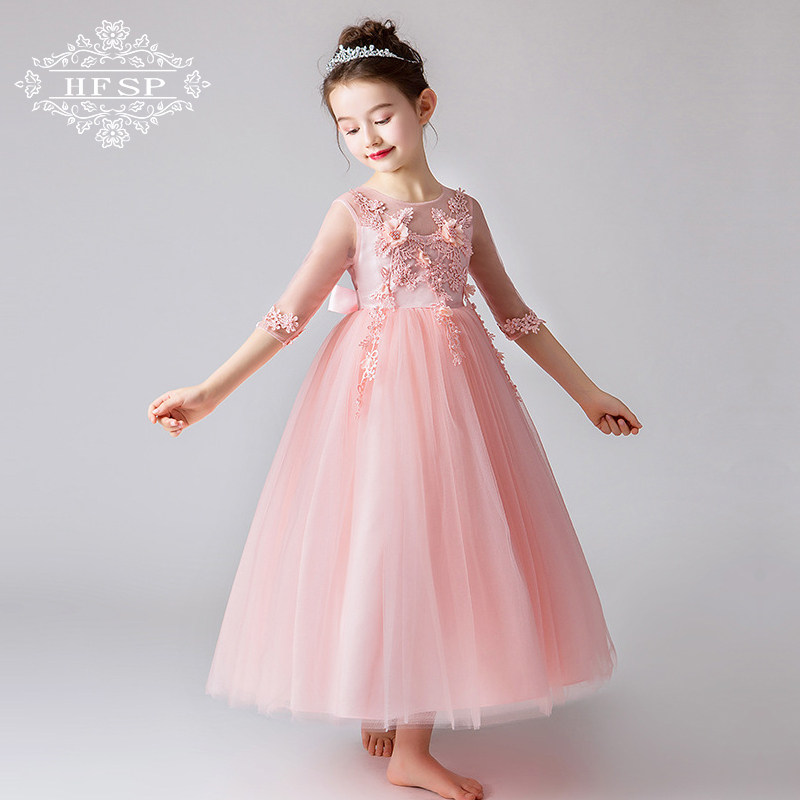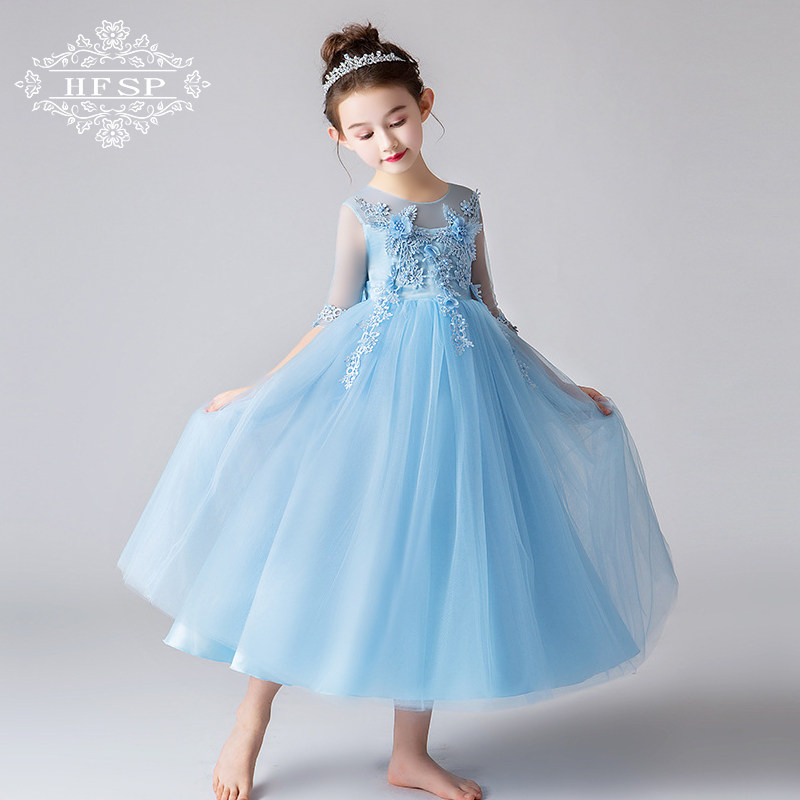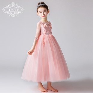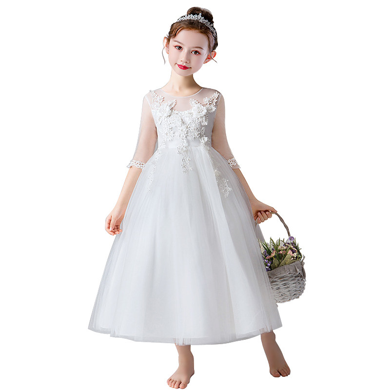 女童礼服裙花童婚纱裙2020年新款 白色蕾丝网纱蓬蓬公主连衣裙表演