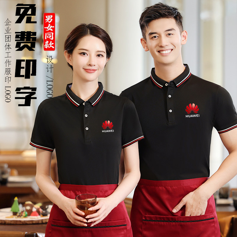 翻领广告餐饮厨师服饭店工衣印字 短袖 定制T恤夏季 厂服工作服T恤