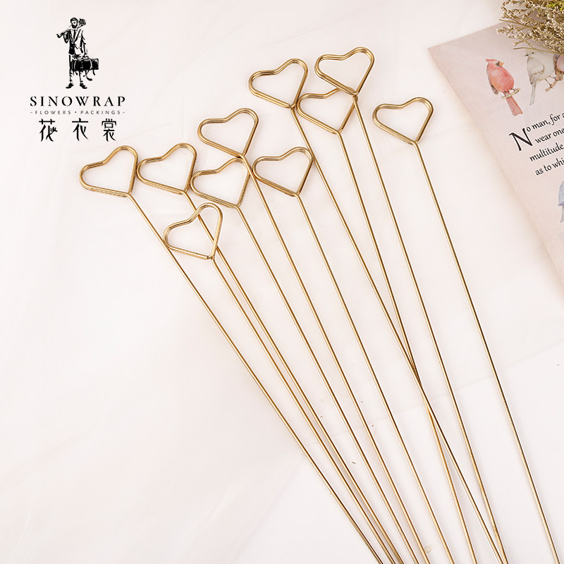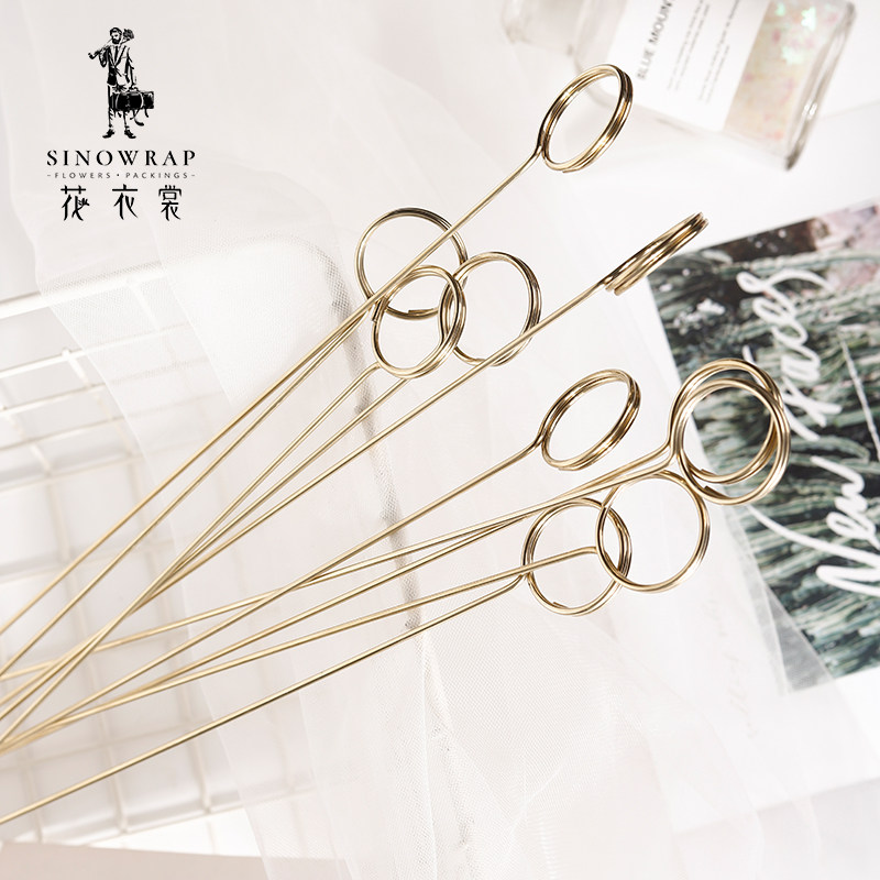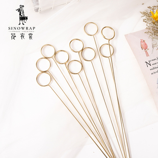 花衣裳韩式 材料花束卡片插签10支 金属镀金卡片插签卡夹鲜花包装