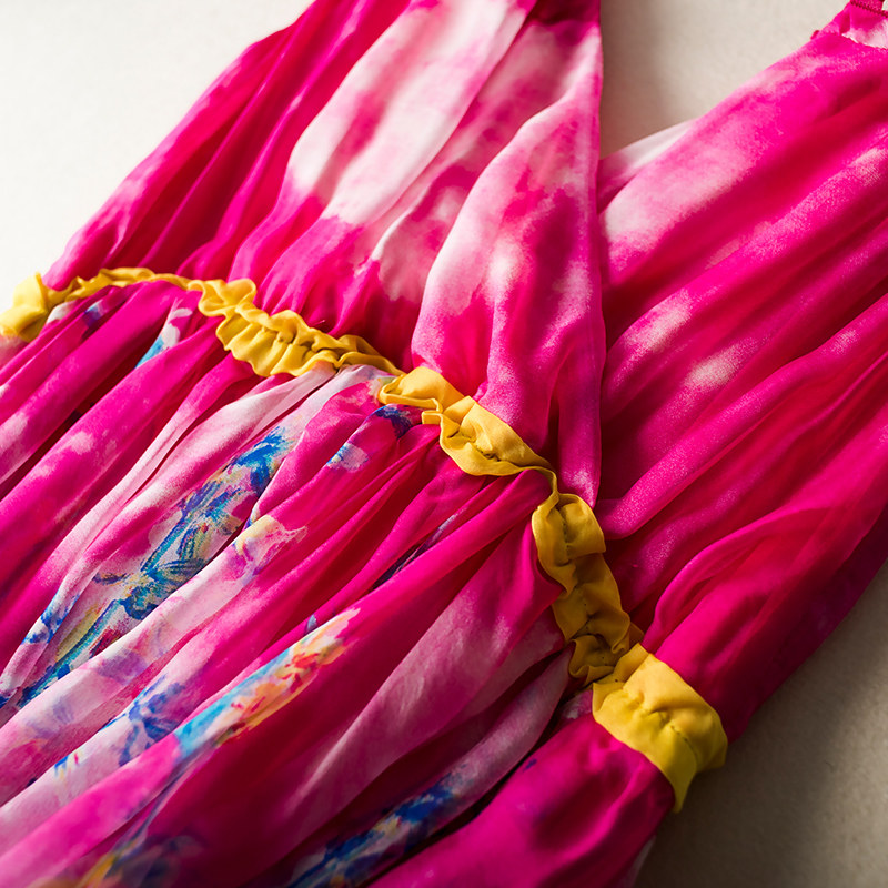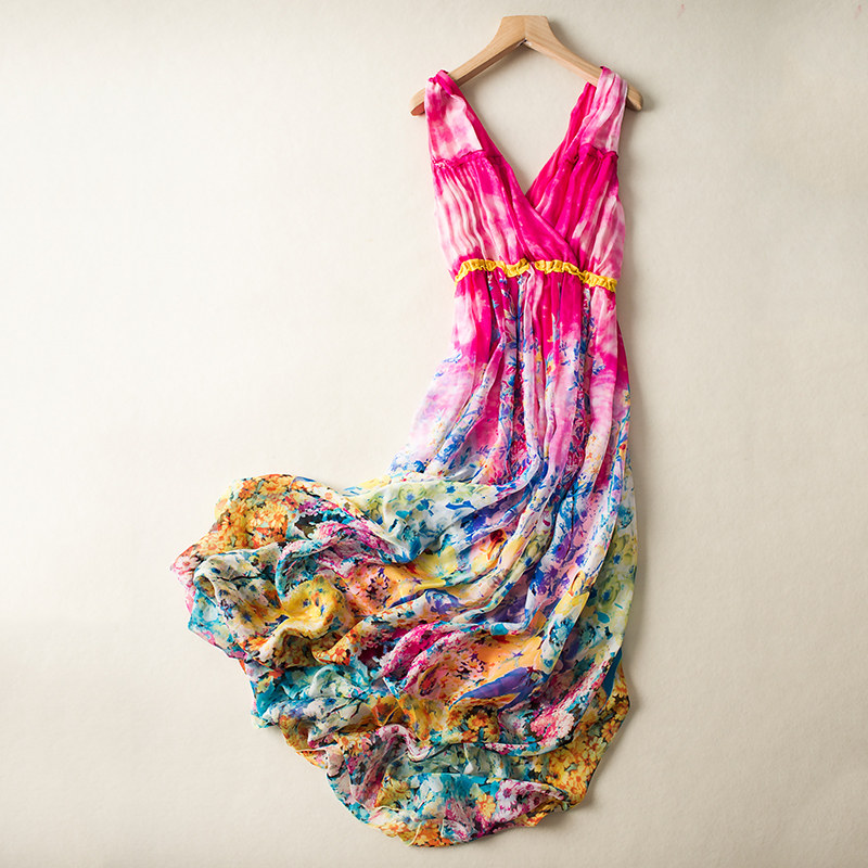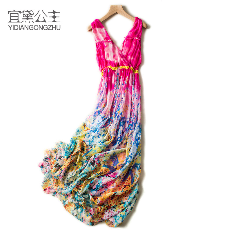 真丝长裙 印花波西米亚度假桑蚕丝连衣裙女装 宜黛公主2024夏季 新款