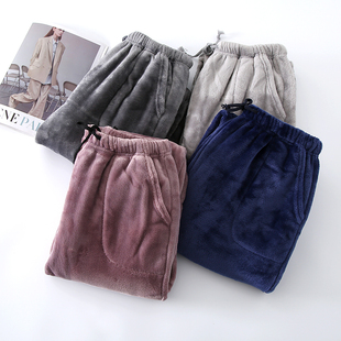 大码 睡裤 水貂绒家居裤 秋冬珊瑚绒加厚男法兰绒暖暖裤 可外穿 女长裤