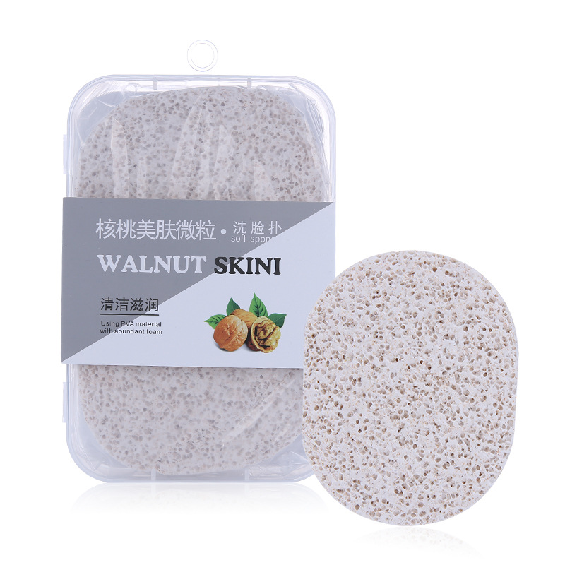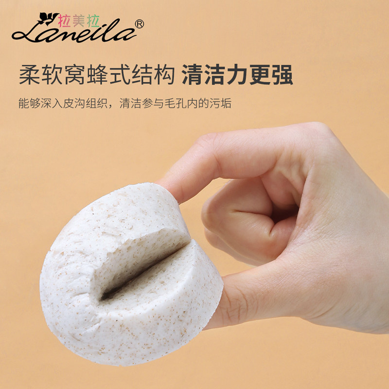 拉美拉木浆棉核桃洗脸扑卸妆洁面粉扑加厚加大孔磨砂带盒2片装