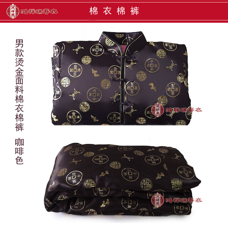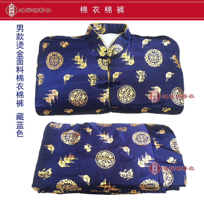 殡葬用品老人冲喜寿衣丝绸烫金男款 寿衣男款 唐装 套装 寿衣 棉衣棉裤