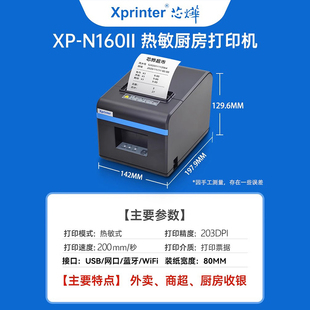 芯烨XP N160II美团外卖网口厨房后厨打餐饮菜单收银小票机前台收银机出单打单机自动切纸蓝牙热敏打印机80mm