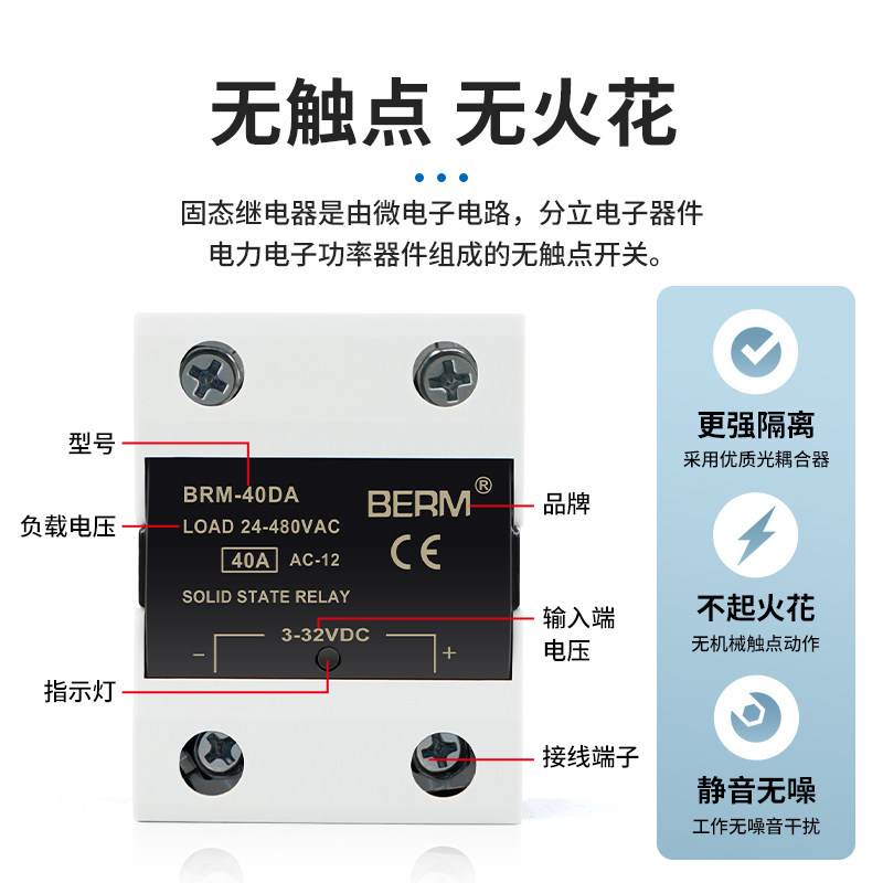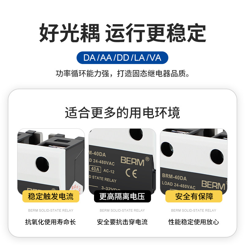 D4840 40DA单相40A 贝尔美固态继电器BRM 40DA直流控交流模块SSR
