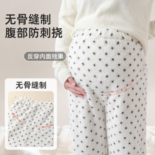 女秋冬长裤 暖宫裤 冬季 居家裤 珊瑚绒加厚 高腰家居裤 半边绒孕妇睡裤
