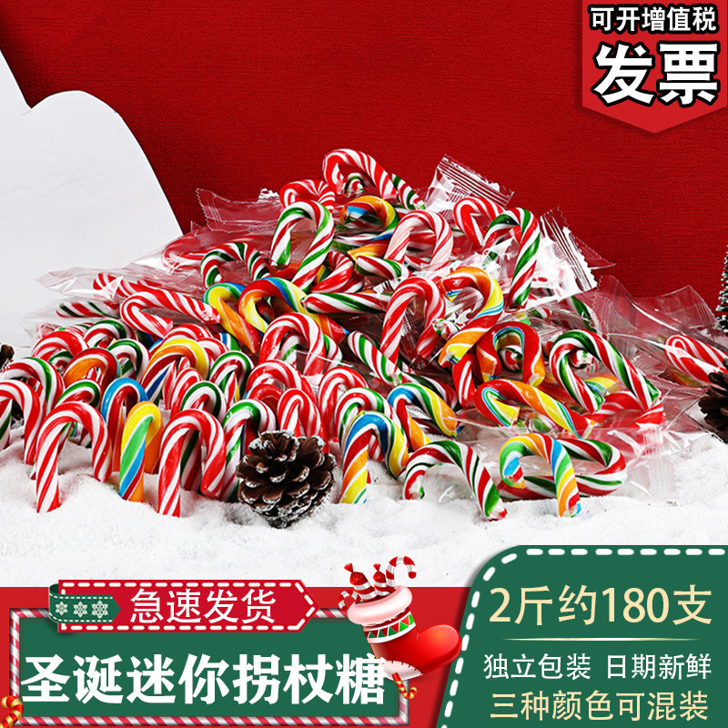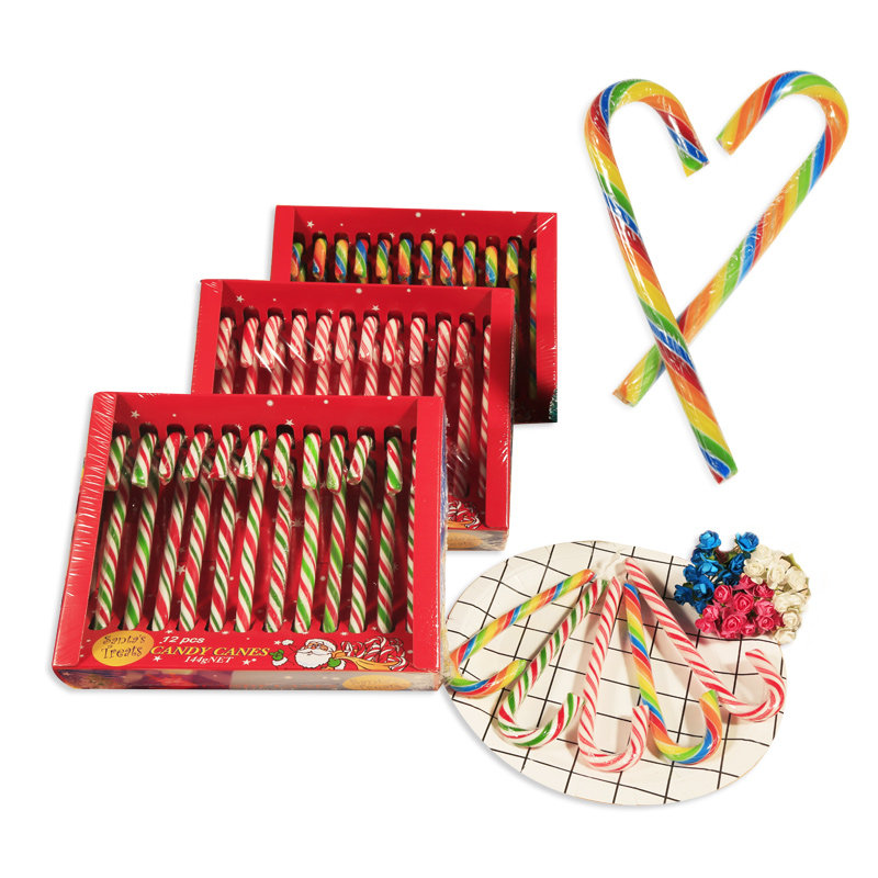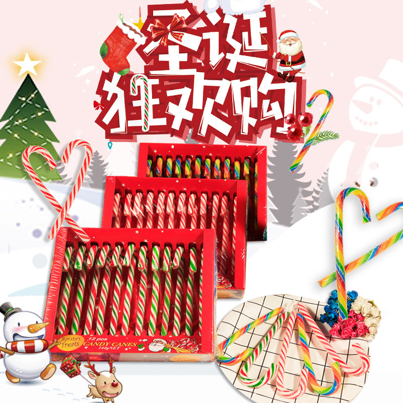 圣诞节糖果创意拐杖棒棒糖网红发批彩虹拐棍糖散装 平安夜圣诞礼物
