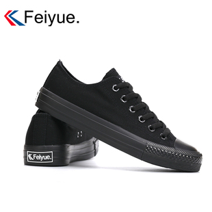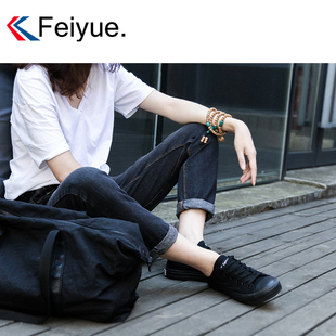 学生板鞋 飞跃feiyue帆布鞋 子情侣款 街拍运动鞋 女新 男全黑社会鞋