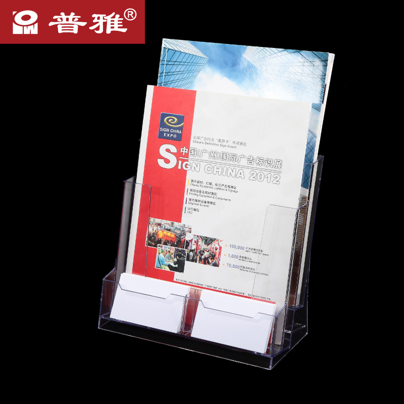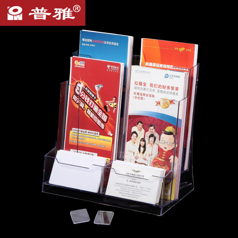 普雅展示架B 452带名片盒A4三层银行转用广告架折页架桌面挂墙多用单页架宣传亚克力资料架透明目录宣传单架